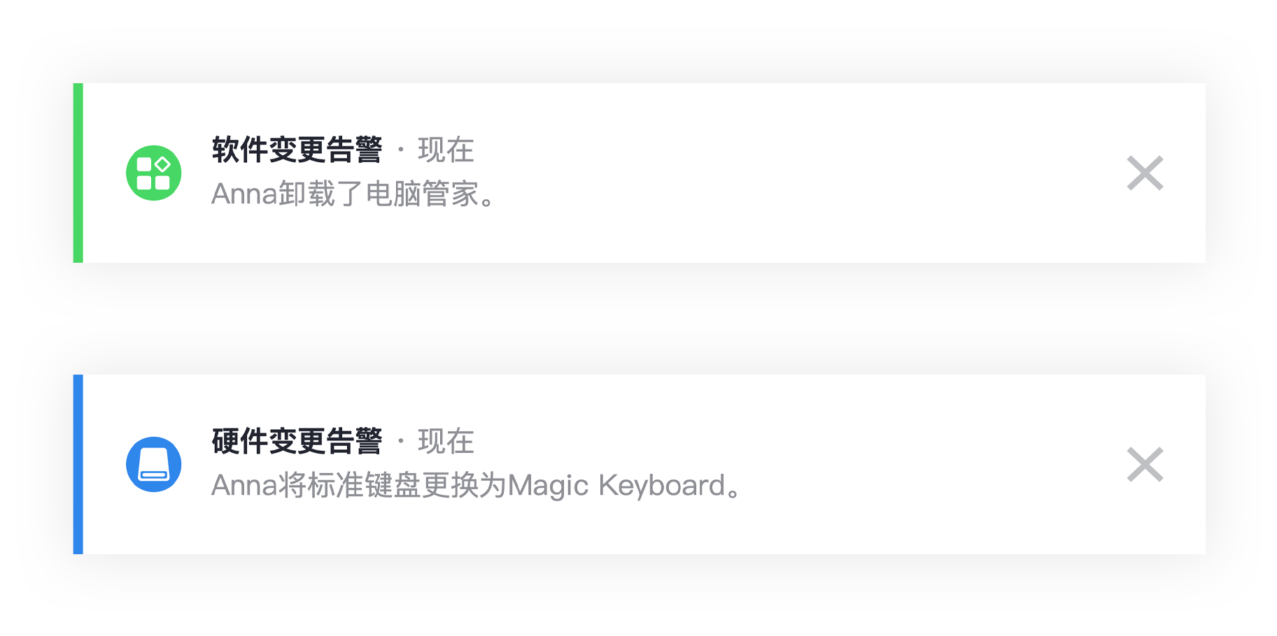 資産變更告警可(kě)以第一(yī)時(shí)間(jiān)幫您發↕®©現(xiàn)違規資産以及避免資産流失的(de)風(fēng)♥©§險。